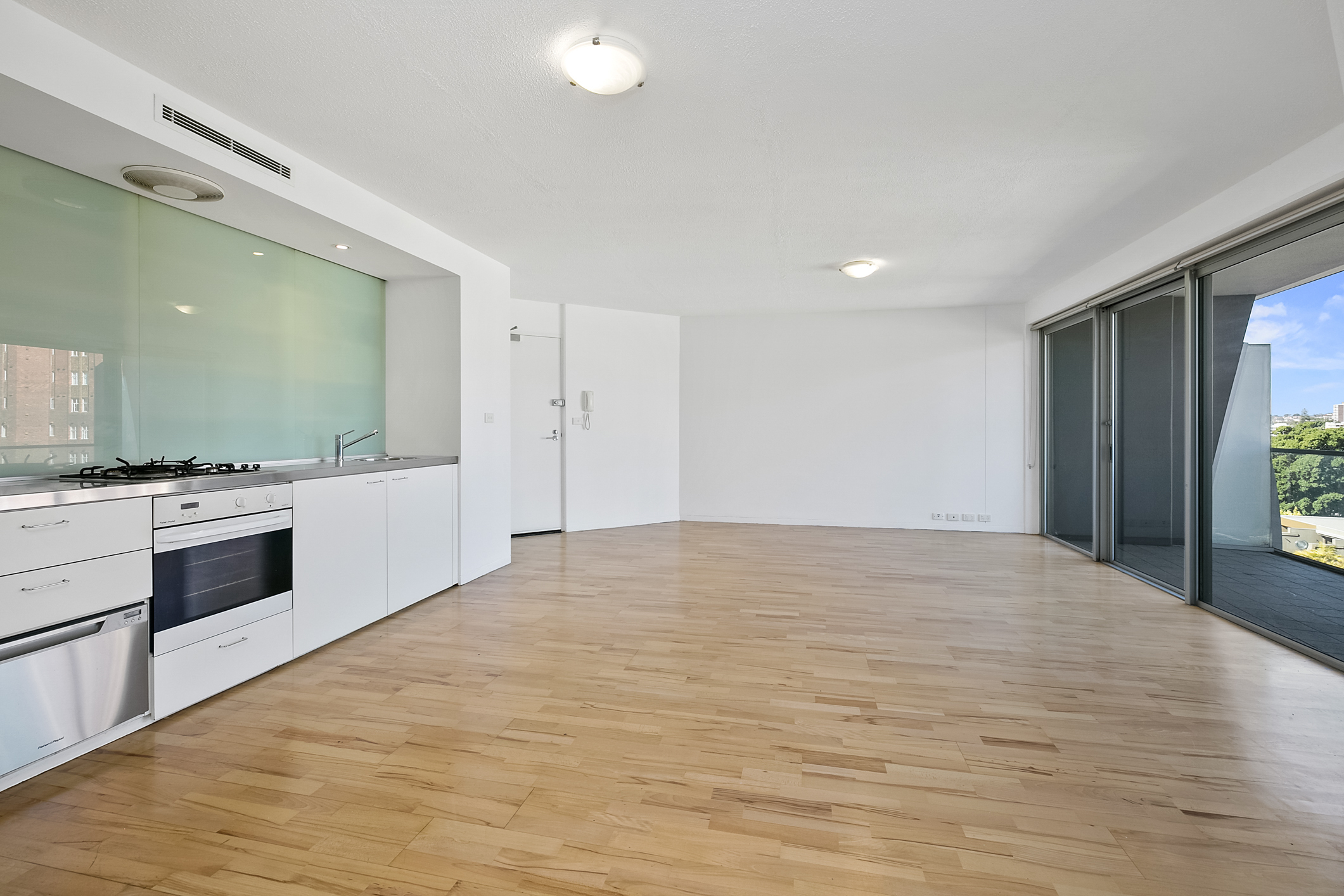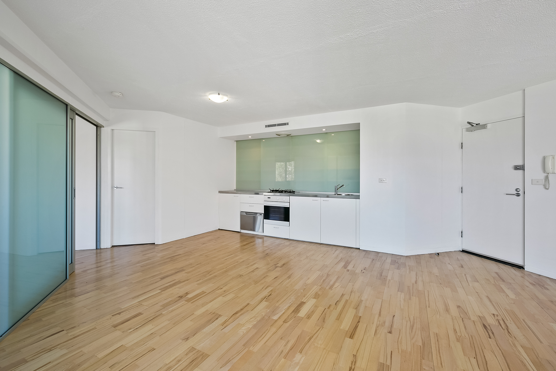 - Galley kitchen with gas cook top, stainless steel benches